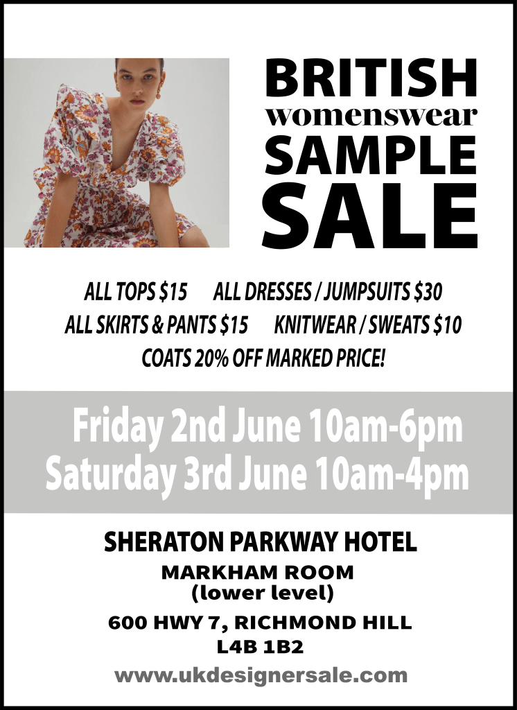 Kicking off the Summer season with a huge blowout sale in Richmond Hill! And more sales to follow…..