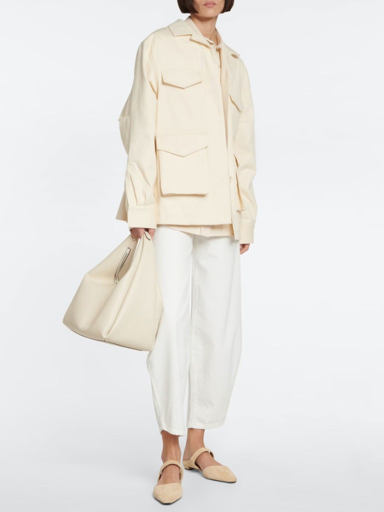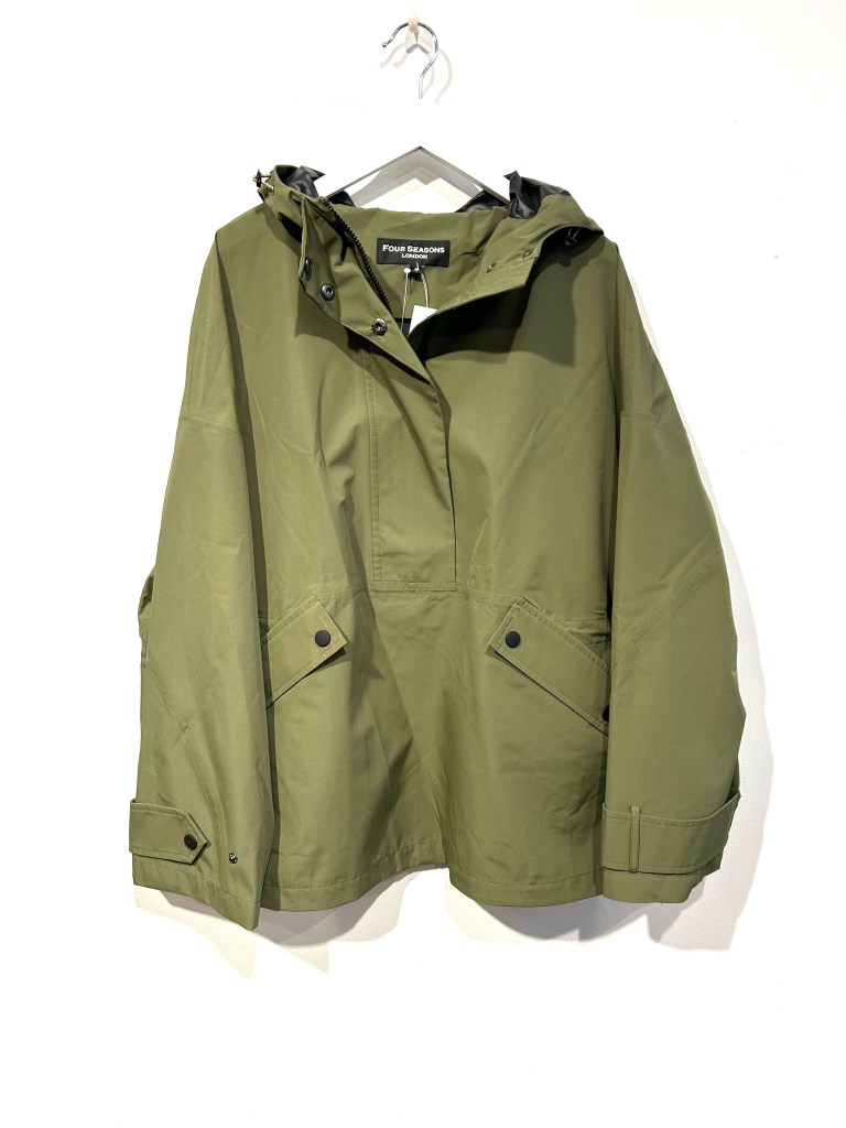 Anorak style pullover rain jacket, cool, oversized and a great khaki green colour! Wear with straight leg jeans and chunky loafers!